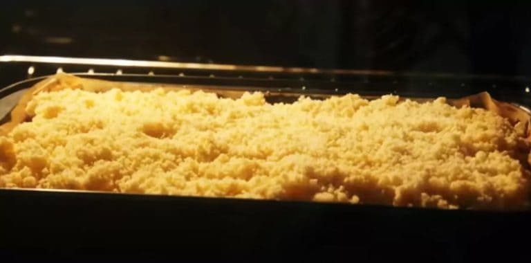 Дістаємо і посипаємо рівномірно штрейзель і повертаємо в духовку ще на 30 хвилин.