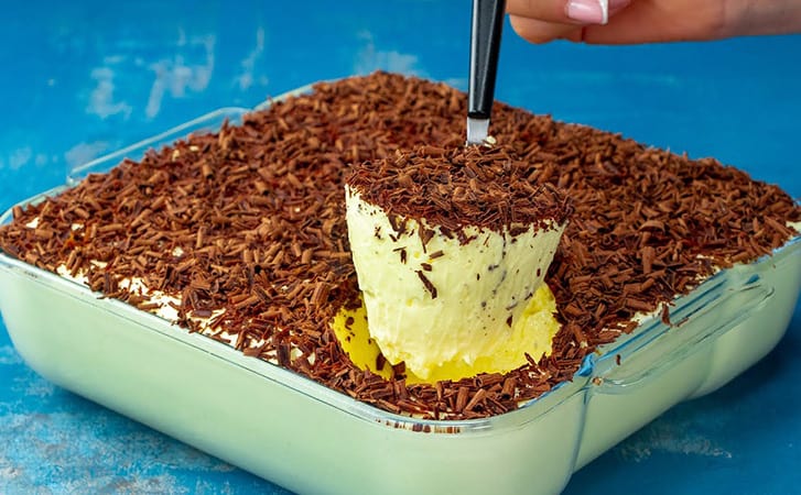 Топінги до такого кремового десерту можна міняти, отримуючи щоразу трохи інший смак. Спробуйте, наприклад, замінити темний шоколад молочним і додати горішки.