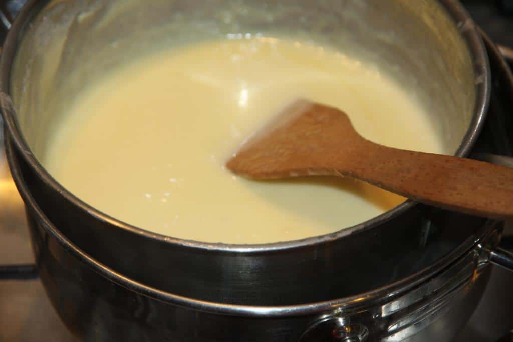 Для приготування крему візьмемо невелику каструлю, виливаємо в неї молоко, додаємо до неї цукор та вершкове масло. Ставимо на вогонь і витримуємо до повного розчинення олії. Додаємо кокосову стружку та добре перемішуємо. Доводимо до кипіння та уварюємо на повільному вогні 10 – 15 хвилин. Крем безперервно помішуємо.