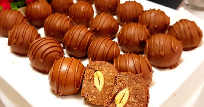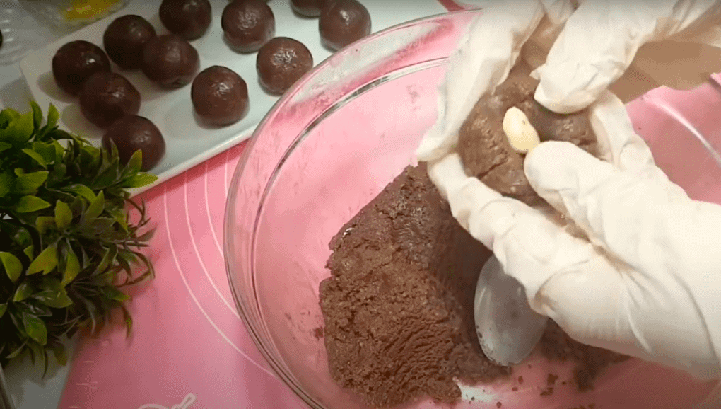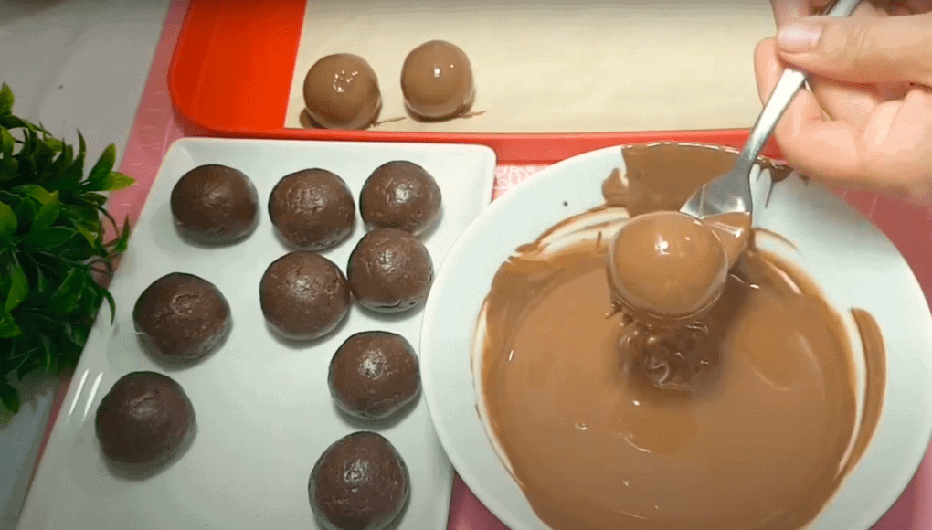 Потім ставимо цукерки застигати у холодильник приблизно на 30 хвилин. Шоколадом, що залишився, можна прикрасити цукерки зверху, наприклад, за допомогою кондитерського мішка.