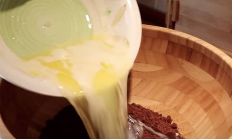 Печиво перемелюємо блендером у дрібну крихту і заливаємо його 100 г розтопленого вершкового масла. Перемішуємо разом.