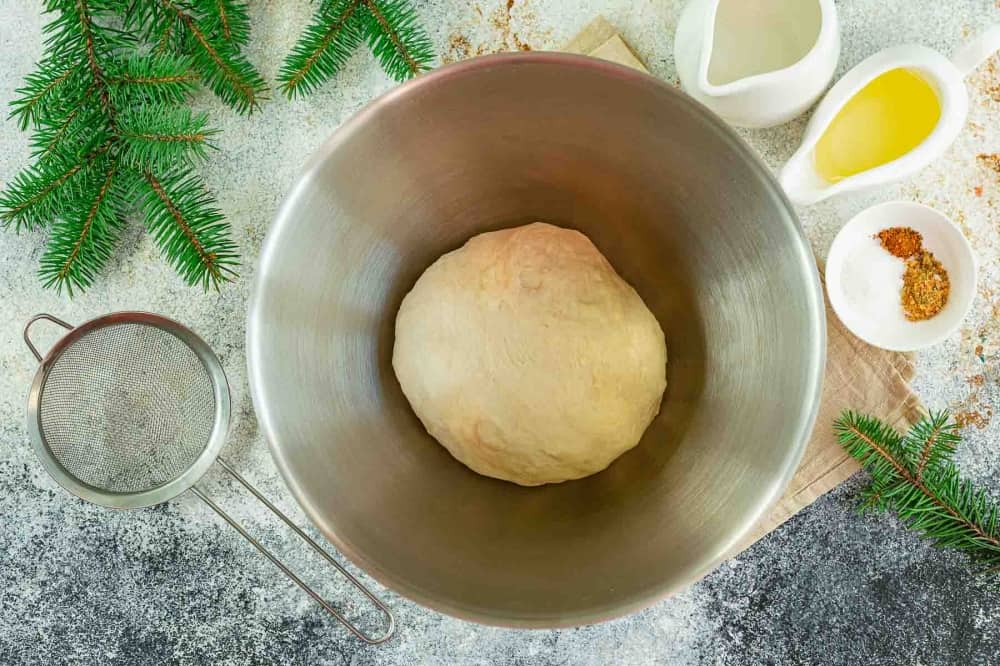 Замісіть однорідне еластичне тісто, воно має вийти досить крутим, як тісто для пельменів. Накрийте посуд плівкою або сухим рушником, залиште на 20 хвилин.