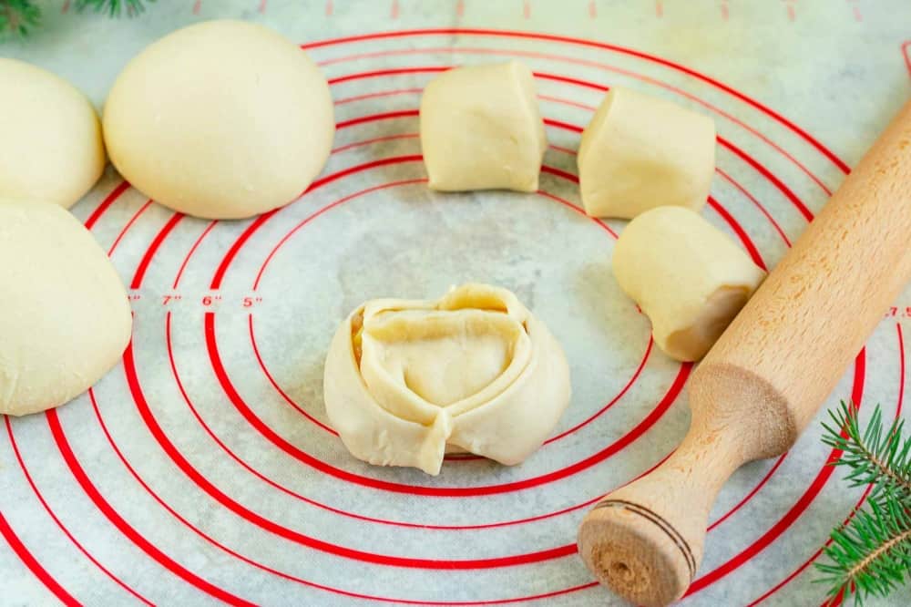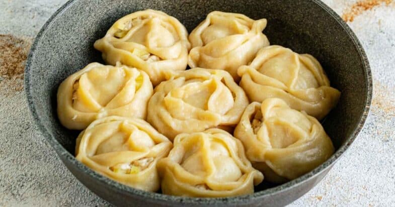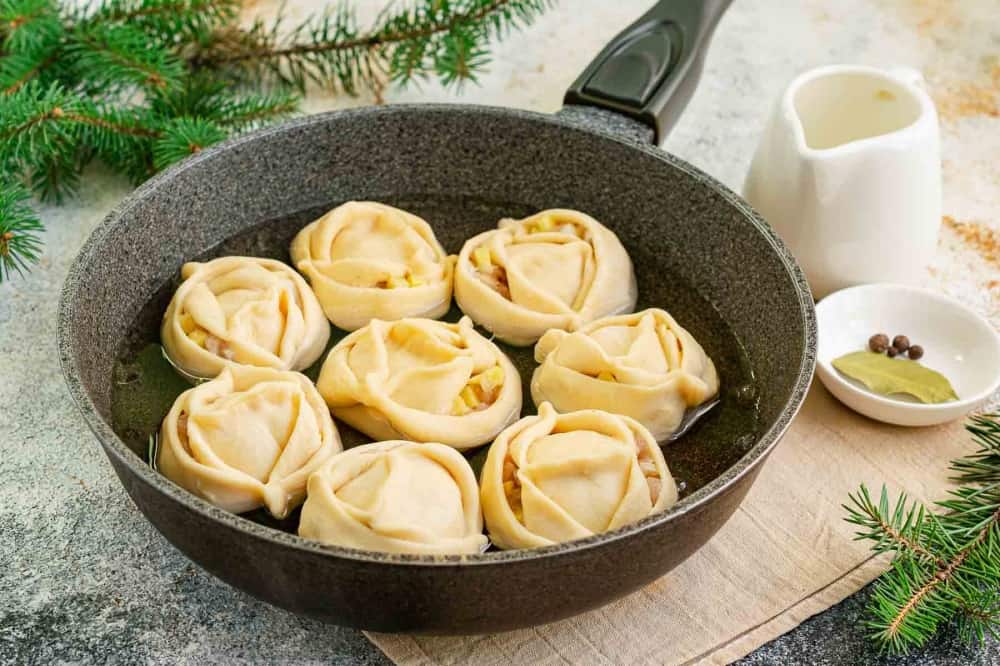 Потім з’єднайте протилежні краї виробу з обох боків. У такий спосіб сформуйте всі манти.