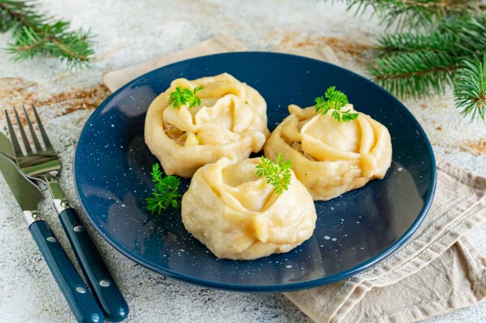 Подавайте апетитні манти у гарячому вигляді одразу після приготування. Страву можна доповнити сметаною чи натуральним йогуртом, змішаним із зеленню.
