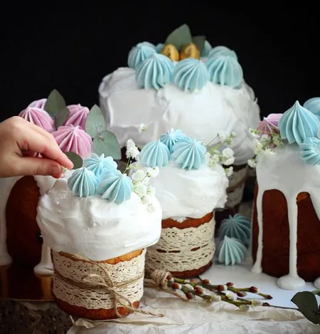 Найкраще для декору паски на Великдень підходить швейцарська меренга, вона швидка у приготуванні, не кришиться та не липне.