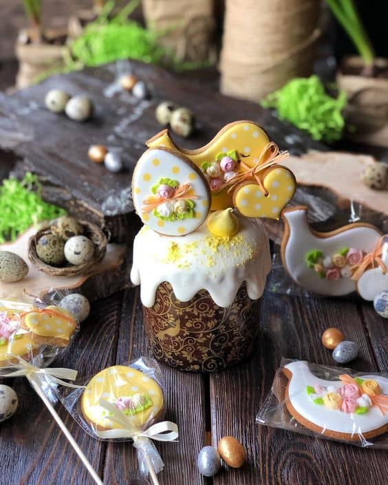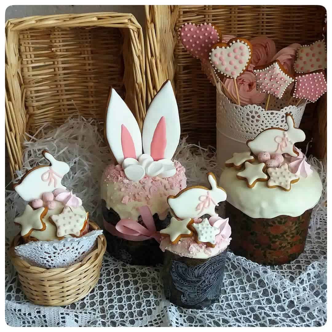 Все більш популярним декором на Великдень, стає оздоблення паски різноманітними пряниками у вигляді яєць, зайчиків, курочок та символічних літер для свята.