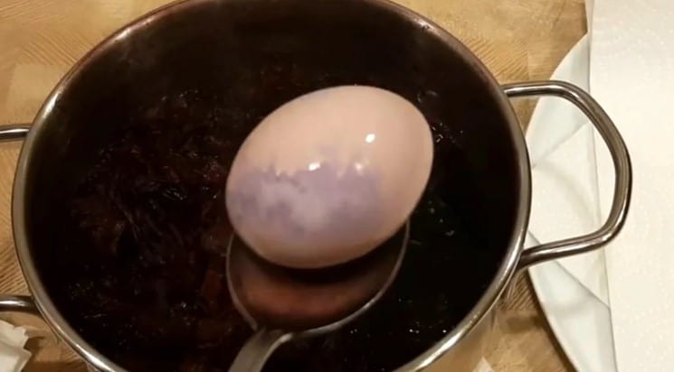 Якщо яйця залишити в розчині каркаде до повного охолодження, то вийде красивий сірий мармуровий колір.