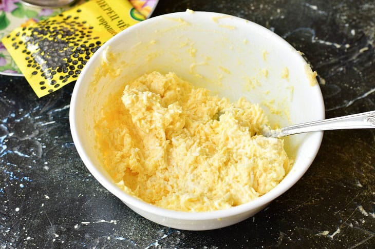 5. Тепер за допомогою столової ложки дуже ретельно все перемішайте. Спробуйте масу. Якщо хочете, можете ще додати сіль і часник.