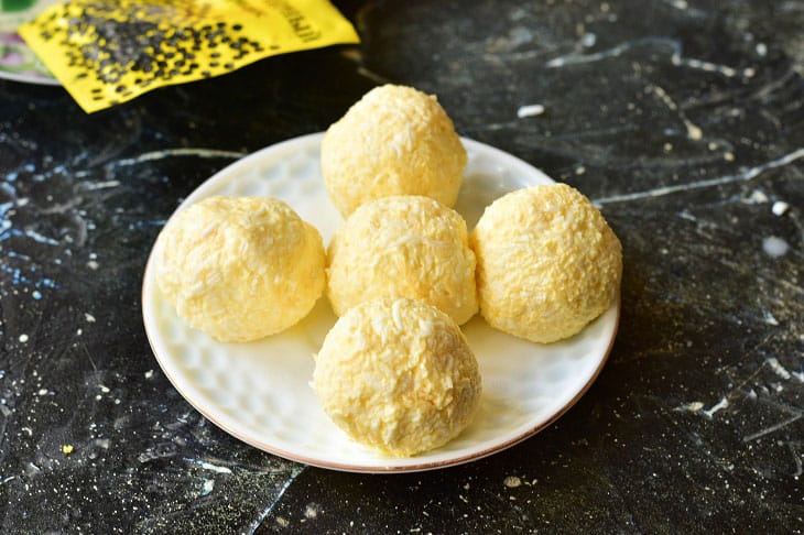 6. Змочіть трохи руки і сформуйте з маси однакові за розміром кульки. Їх відразу ж викладіть на тарілку, на якій плануєте подати їх до столу.