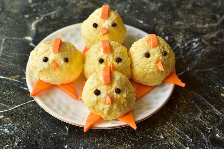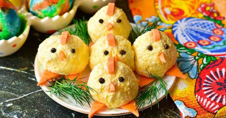 Сирні кульки «Курчата» будуть просто приголомшливо виглядати на святковому столі на Великдень. Гості точно оцінять таку закуску, а дітлахи в першу чергу захочуть її спробувати. До речі, найважливішим моментом в швидкому приготуванні закуски є те, що потрібно попередньо відварити курячі яйця. Також варто використовувати якісний твердий сир, а яйця купити домашньої птиці. Замість майонезу підійде також сметана. Щоб кульки зробити більш гострими, потрібно додати більше подрібненого часнику.