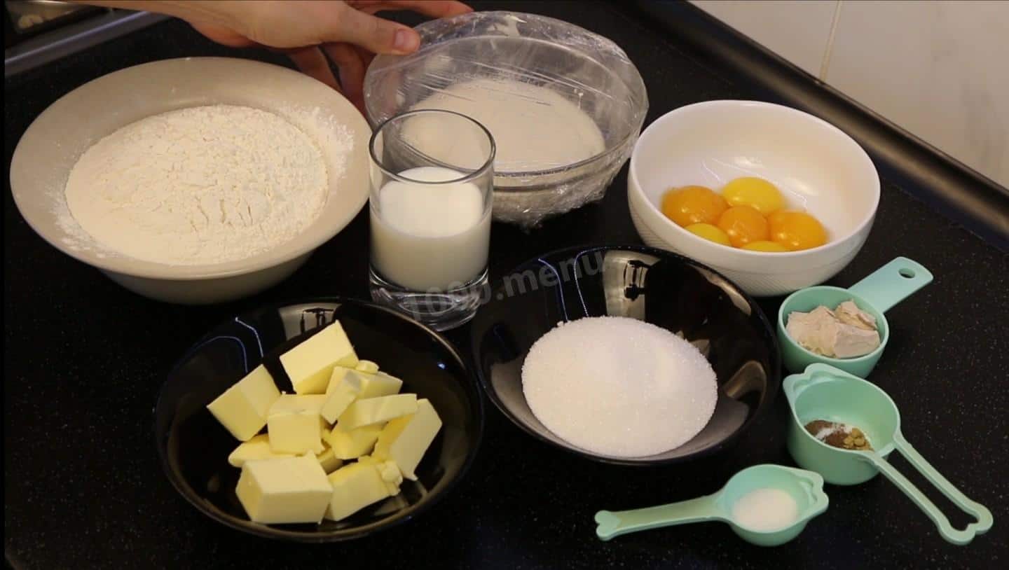 Коли біга буде готова, продовжую заміс тіста. Для нього знадобиться: Уся біга. Її потрібно дістати із холодильника за 2 години до замісу тіста. Сильна мука (вміст білка не менше 13%) Молоко 3,2% жирності, кімнатної температури. Вершкове масло не менше 82% жирності, охолоджене, але пластичне. Охолоджені жовтки. Цукор. Пресовані дріжджі. Солі не шкодуйте. Спеції-за бажанням. У мене, як завжди – ваніль, кориця, мускатний горіх, кардамон.