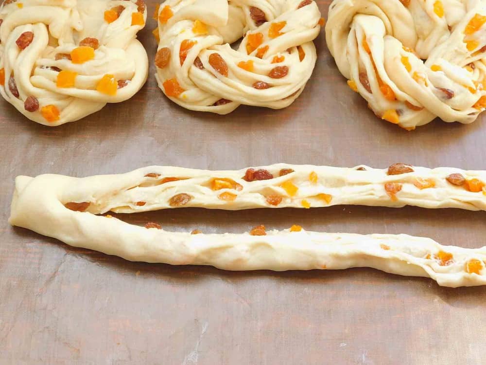 Дивлячись на такі пишні, рум’яні, м’які, смачні та красиві булочки-завиванці з дріжджового тіста із сухофруктами відразу виникає питання, а як їх сформувати. Насправді все дуже просто, і точно вийде навіть у недосвідчених кулінарів. Як начинку можна використовувати родзинки, курагу, мак, горіхи, мелену корицю.