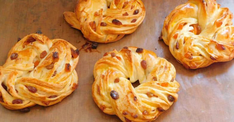 Дивлячись на такі пишні, рум’яні, м’які, смачні та красиві булочки-завиванці з дріжджового тіста із сухофруктами відразу виникає питання, а як їх сформувати. Насправді все дуже просто, і точно вийде навіть у недосвідчених кулінарів. Як начинку можна використовувати родзинки, курагу, мак, горіхи, мелену корицю.