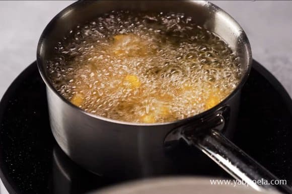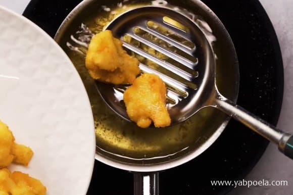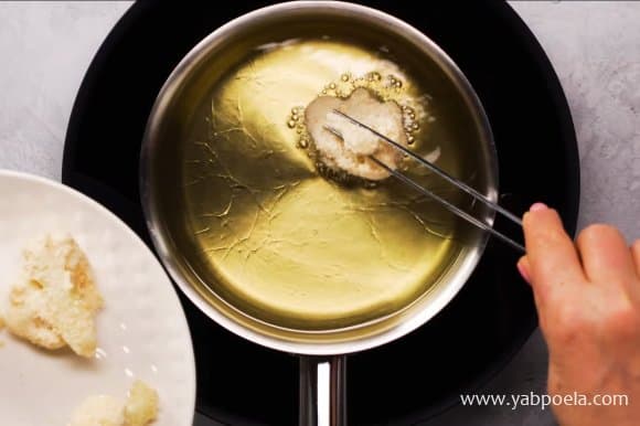 Невеликими партіями по штучок 5-6 обсмажуємо капусту до золотистого кольору приблизно 3.5 хвилини.
