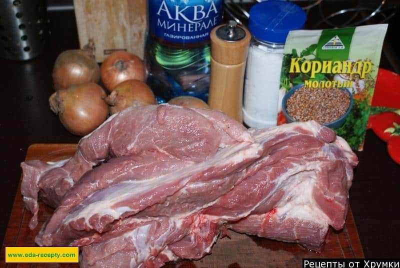 Підготуйте усі необхідні інгредієнти. Пропоную для цієї страви взяти частину свині, яка називається ошийок – це ідеальне м’ясо для приготування на вогні.