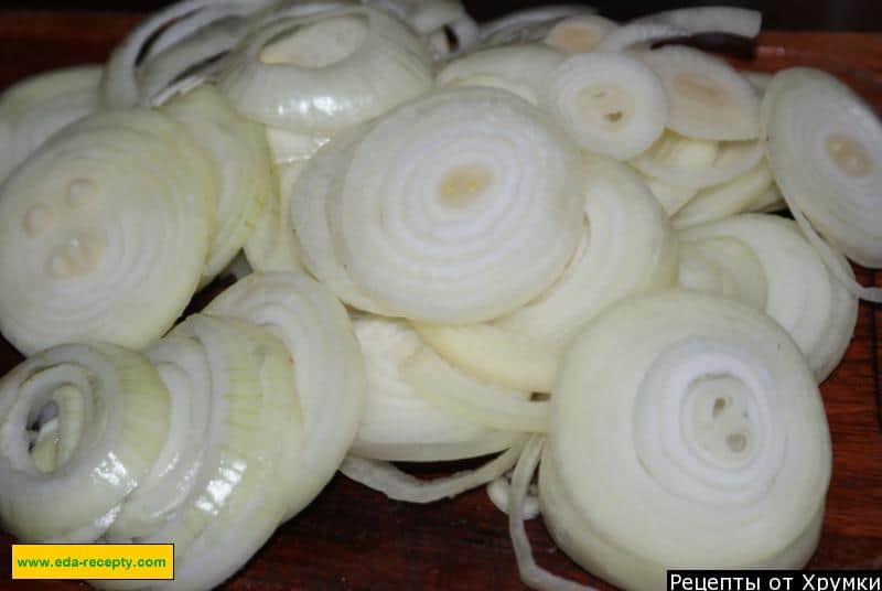 Як замаринувати м’ясо? Отже, йдемо по порядку. Візьміть цибулю, очистіть від лушпиння і наріжте товстими кільцями.