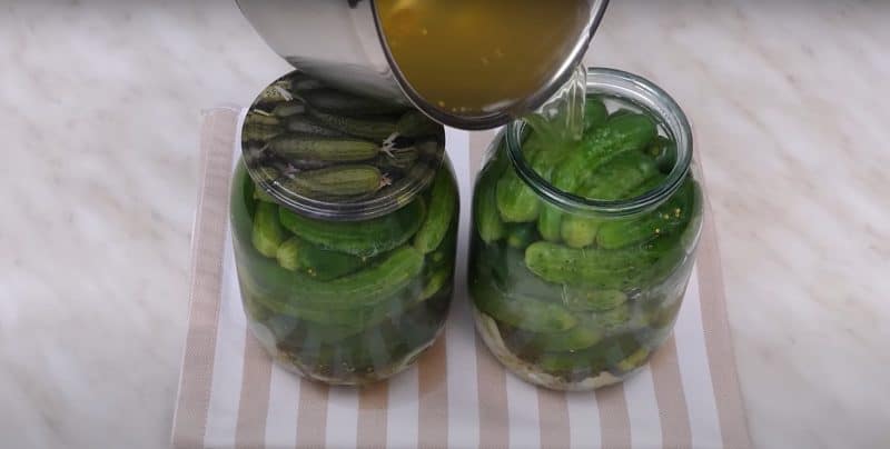 Зливаємо воду і доводимо до кипіння, знову заливаємо у банки на 10 хвилин.