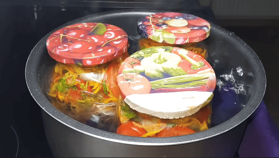 Вийміть банки з кастрюлі, герметично закрийте кришками, переверніть і укрийте рушником.