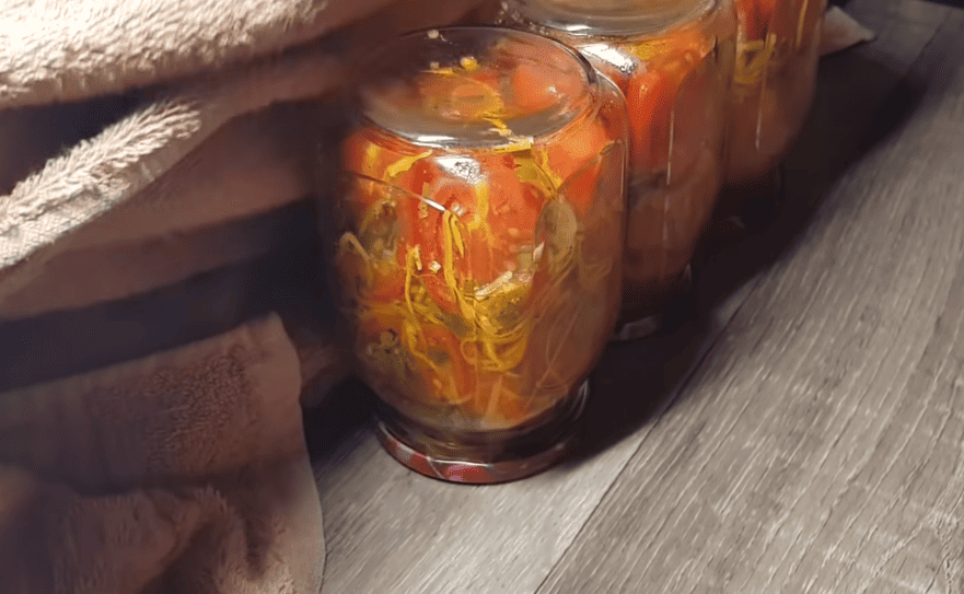Після охолодження банок, закуска з помидорів по-корейськи готова для зберігання. Зберігайте їх у прохолодному місці.