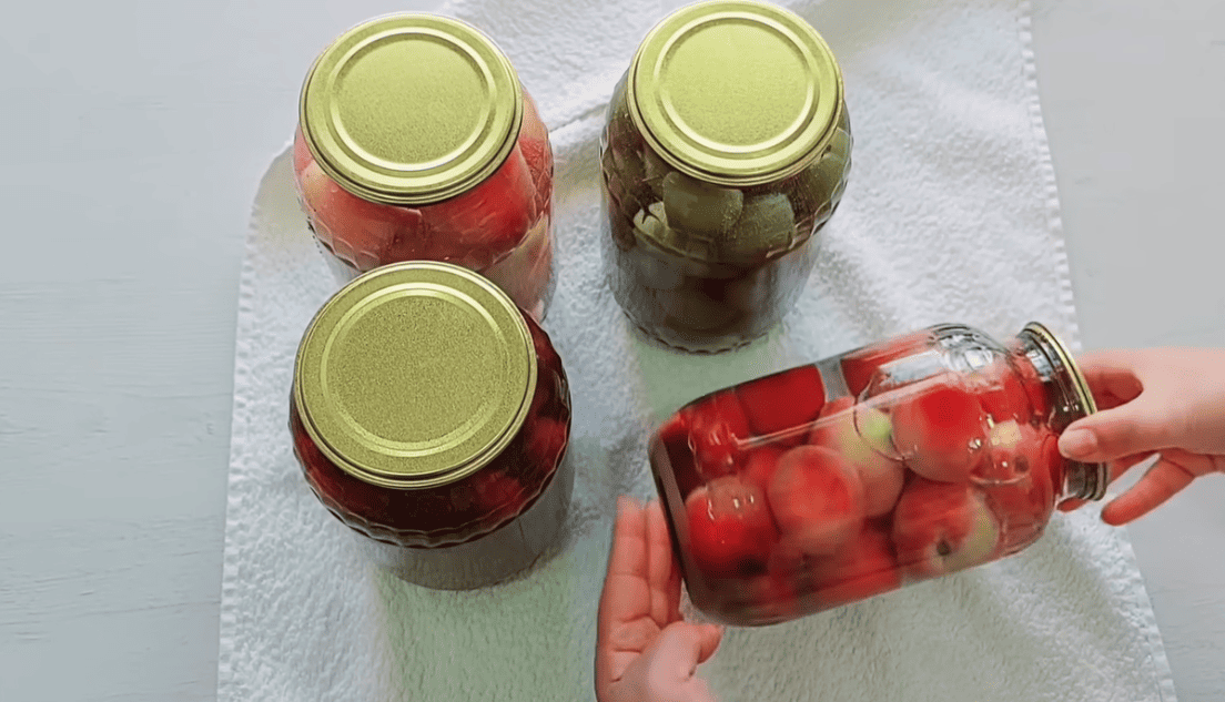 Закриваємо стерилізованими кришками і накриваємо рушником остигати. Перед накриттям кожну банку кілька разів перевертайте або прокатайте на столі, щоб цукор швидше розчинився і в банці вийшов справжній сироп.