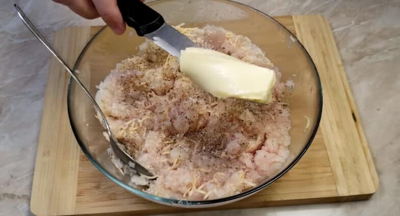 Масу солю і перчу за смаком та додаю 1 секретний інгредієнт – м’яке вершкове масло. Саме воно дасть особливий смак нашим котлеткам.
