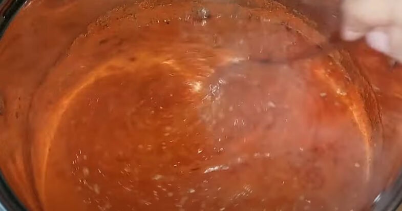 Отже, соус із перцю й помідорів закипає. Сиплю туди сіль, цукор і вливаю олію. Добре розмішую, доводжу до кипіння і даю покипіти хвилин 5.