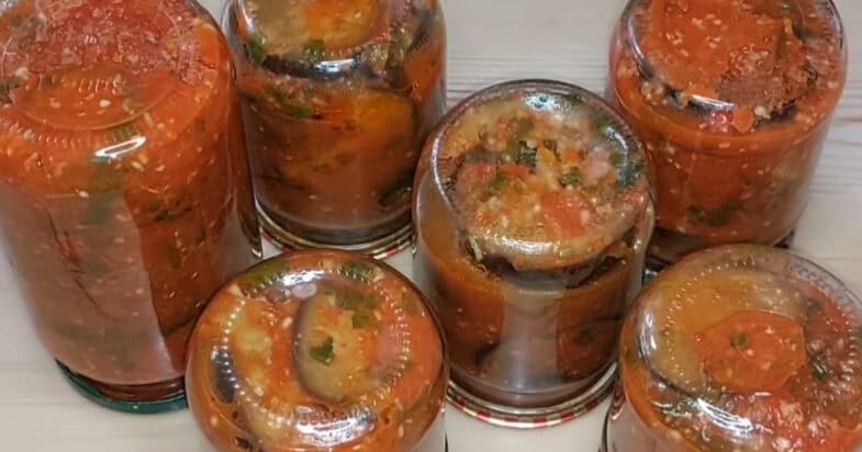 Баклажани за цим рецептом виходять дуже смачні, ніжні, в ароматному томатному соусі. Зимою така банка – справжня знахідка! І як гарнір, і як самостійна страва – їсти одне задоволення.