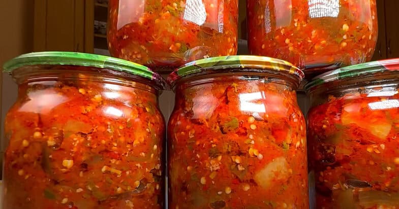 Взимку відкриваю баночку — і ніби літо в хаті. Салат виходить насичений, шматочки синіх тримають форму, не розлазяться, а смакують у цьому ароматному соусі просто ідеально. Легка кислинка, запах кінзи й часничку — отой самий грузинський колорит.