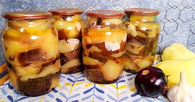 Дівчатка, хочу поділитися з вами дуже смачним рецептом заготовки на зиму. Це баклажани по-грузинськи. Салат виходить просто неймовірний: з часничком, зеленню та пікантним ароматом. Я вже не перший рік його закриваю і завжди взимку тішуся, коли відкриваю баночку — пахне, як свіженьке щойно з плити!