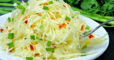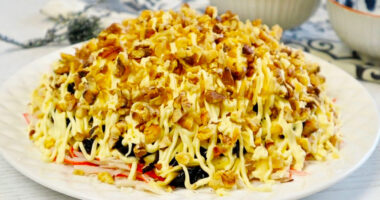 Попри те, що салат дуже простий і навіть бюджетний, виходить він напрочуд смачний, свіжий і легкий. Такий салат чудово підходить не лише на кожен день, а й дуже доречно виглядає на святковому столі.