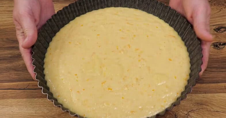 Усі сухі інгредієнти я ретельно перемішую разом із цедрою, щоб розпушувач рівномірно розподілився, потім додаю сік і олію та ще раз добре перемішую. Даю тісту постояти 5 хвилин — воно виходить ніжне, кексової консистенції. Тим часом розігріваю духовку до 180 градусів. Форму можна взяти скляну розміром 30×20 сантиметрів і висотою 5 сантиметрів або круглу — у мене форма діаметром 23 сантиметри по дну. Щоб легше було дістати пиріг, я вирізаю коло з пергаменту й вистеляю дно. Виливаю тісто у форму та випікаю за 180 градусів приблизно 25-30 хвилин до готовності — перевіряю зубочисткою, вона повинна виходити сухою і чистою. Головне — не перетримати в духовці, щоб пиріг залишився вологим і ніжним.