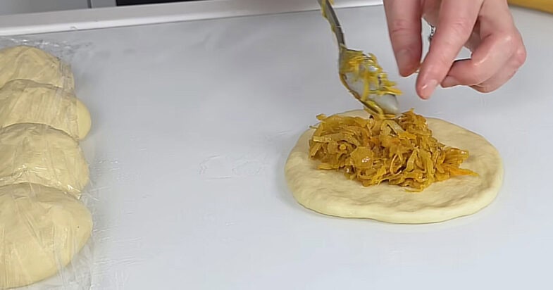 Цього разу я готую пиріжки в духовці з начинкою із свіжої та квашеної капусти. Для начинки я обсмажую цибулю до золотистості, додаю моркву і пасерую до м’якості, потім додаю дрібно нашатковану свіжу капусту, обсмажую до середньої м’якості, всипаю квашену капусту і готую все разом до м’якості або легкої хрусткості. Наприкінці обов’язково солю, перчу, додаю трохи цукру і шматочок вершкового масла для завершення смаку. Начинка має повністю охолонути.