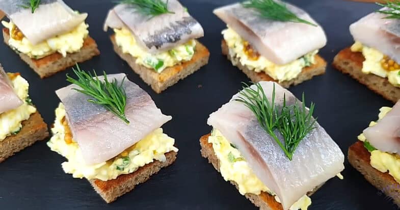 На завершення я прикрашаю бутерброди гілочками свіжого кропу. Закуска виходить дуже ароматною, яскравою і виглядає справді святково, хоча готується буквально за кілька хвилин. Такий простий рецепт бутербродів з оселедцем завжди виручає, коли потрібно швидко приготувати щось смачне. Подаю їх одразу до столу — і, чесно кажучи, вони зникають з тарілки дуже швидко, адже подобаються практично всім гостям. Смачного!