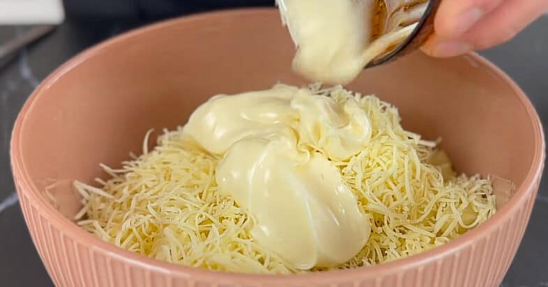 Після цього беру твердий сир і натираю його на дрібній тертці — так салат виходить особливо ніжним і добре поєднується з фруктами. Натертий сир додаю в миску до винограду та ананаса. Для заправки кладу кілька ложок майонезу і все добре перемішую, щоб інгредієнти рівномірно поєдналися між собою. До речі, за бажанням майонез можна замінити натуральним йогуртом, але з майонезом смак виходить більш насиченим і святковим.