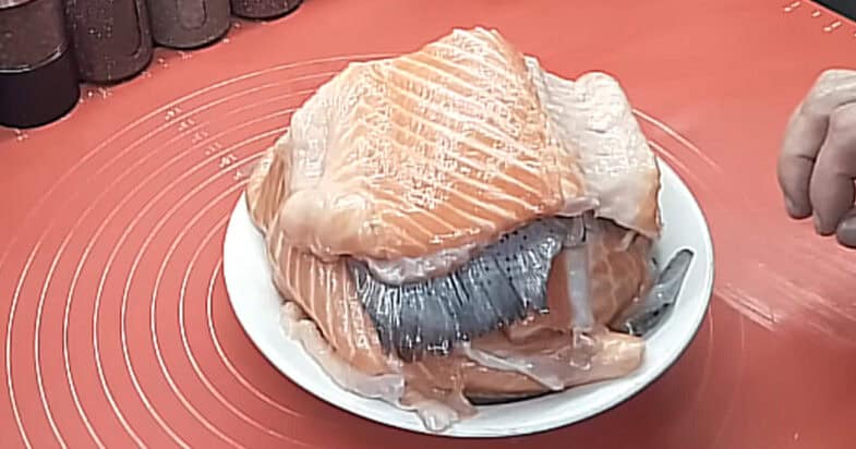 Купила набір для супу з червоної риби, який продається охолодженим у магазині. Кажуть, що з таких наборів виходить дуже смачний і наваристий бульйон, тому вирішила спробувати. У наборі були різні частини риби: шматочки з м’ясом, два хвости та голова. Головне — перед приготуванням обов’язково видалити зябра, щоб бульйон не мав гіркоти. Рибу я добре промиваю холодною водою, кладу в каструлю. У мене каструля приблизно на 2 літри, тому я заливаю рибу водою, доводжу до кипіння і варю приблизно 10 хвилин, періодично знімаючи піну. Після цього рибу виймаю, а бульйон обов’язково проціджую через сито, щоб він був чистий і прозорий.