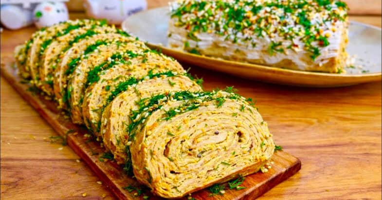 Сьогодні хочу поділитися з вами рецептом дуже смачної та ефектної закуски — печінкового рулету. Рулет виходить ніжний, ароматний і дуже апетитний, а поєднання печінки з м’якою вершковою начинкою робить його смак особливо насиченим.