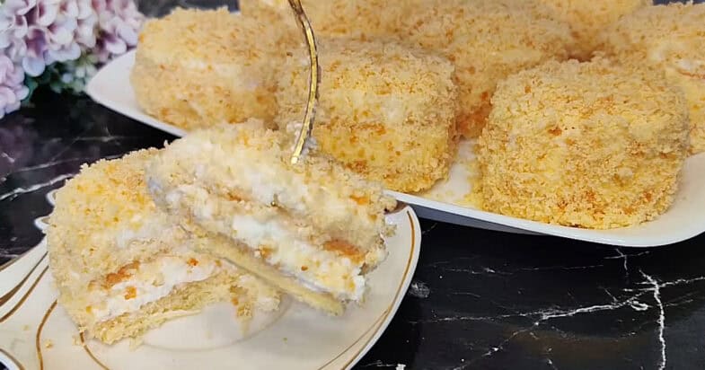 Змащую кремом з усіх боків, посипаю крихтою, смачного!