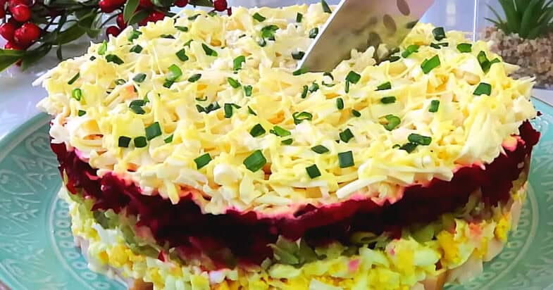 Приготую дуже смачний салат на святковий стіл, який зникає за хвилини. Салат цей з доступних продуктів, сама завжди дивувалась, чому так смачно!