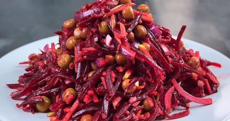Це найсмачніший салат з буряка та банки горошку! Ми всі його обожнюємо, бо має незабутній смак! Спробуйте здивувати ним своїх гостей!