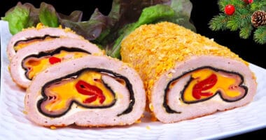 Сьогодні у мене ніжний рулет з курячого фаршу з вершковим сиром і шинкою – проста і ефектна страва, яка роблю лише за 30 хвилин. Готую на усі свята!