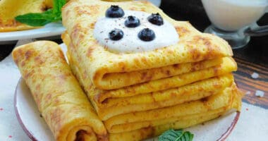 Млинці на кислому кефірі добре згортаються і не рвуться. Вони ідеально підійдуть для фарширування будь-якою начинкою